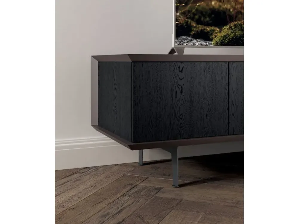 Nella fotografia è ben visibile il legno con cui questo mobile porta tv è costruito: la pluriennale competenza Ozzio assicura materiali sempre resistenti e belli.