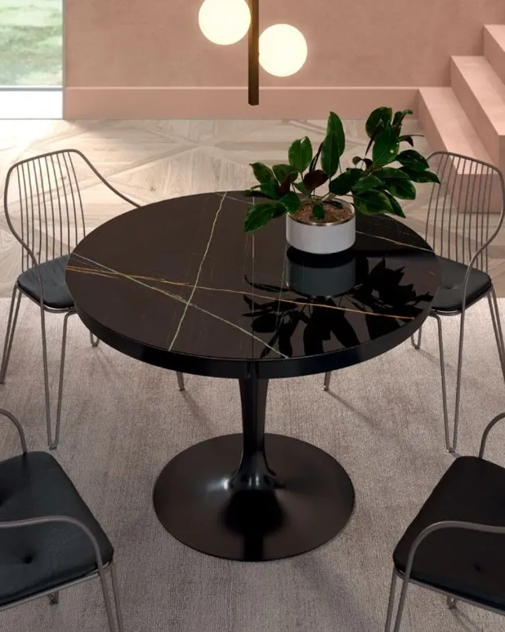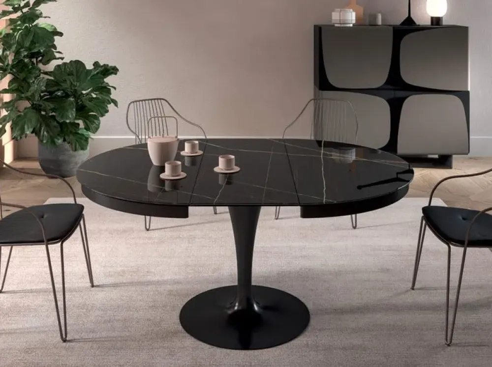 - Questo tavolo Eclipse è caratterizzato da una struttura con basamento centrale che ne completa l’estetica, totalmente realizzato con materiali pregiati e resistenti nel tempo.
