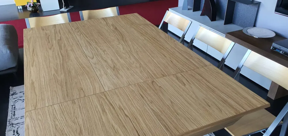 Il piano è allargabile così da creare a capo tavola lo spazio necessario per collocare ben 4 posti a differenza dei tavoli comuni che hanno solo un posto