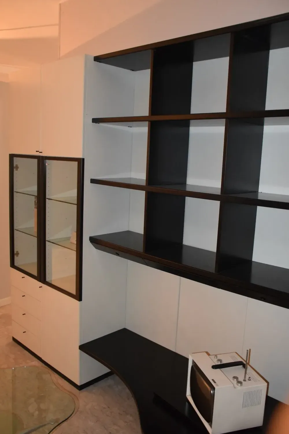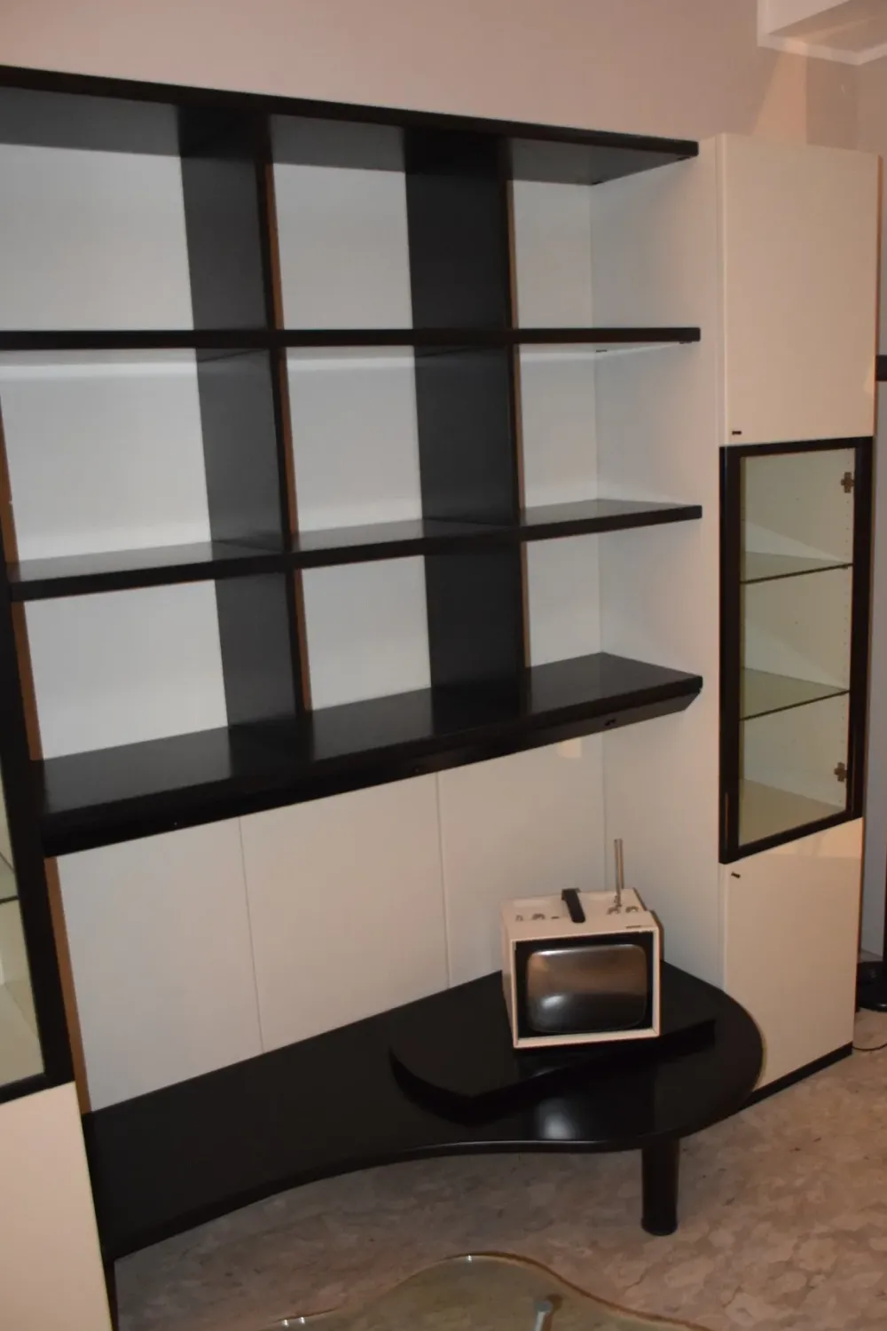 Composizione cm.300 h.230 in legno laccato opaco bianco//nero.