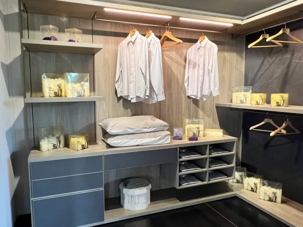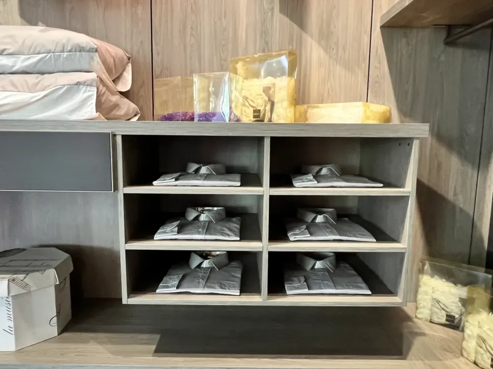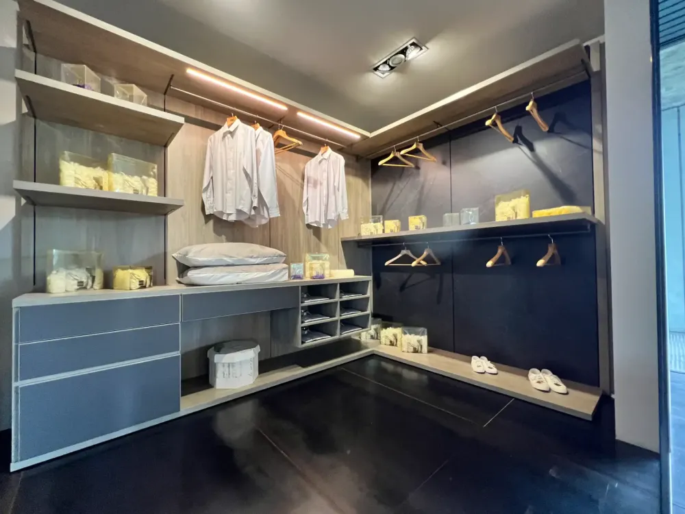Offerta cabina armadio Pianca modello Anteprima. Completa di attrezzatura interna con cassettiera a 3 cassetti, porta pantaloni, ripiani, pedana, tubi appendiabiti ed illuminazione a led. Gli spazi sono stati studiati in modo da poter riporre più comodamente ogni genere di indumento. Misure: L316x235, H258. Il prezzo è incluso di I.V.A. Sono esclusi i costi di un eventuale trasporto e montaggio. L’offerta è valida per la composizione esposta. Il saldo deve avvenire prima della consegna.