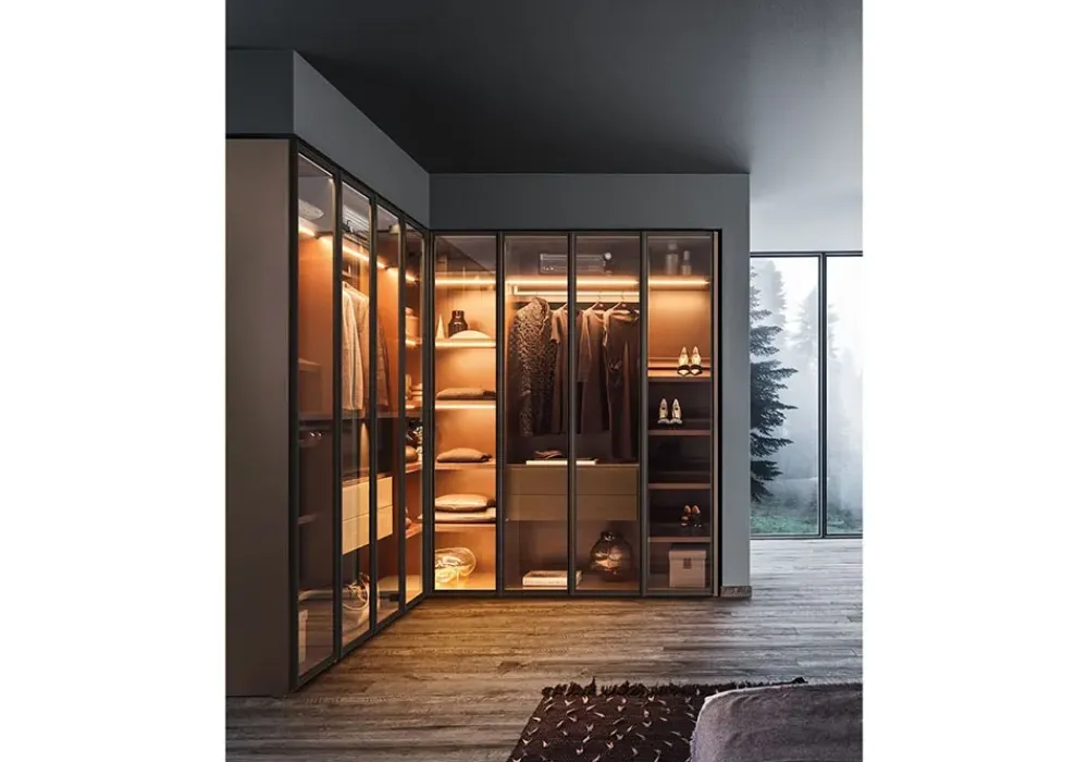 Armadio a 6 ante battenti Pianca modello Milano, dal design moderno e molto elegante, a partire da660,00 IVA inclusa (escluso trasporto e montaggio) nella versione con ante in Vetro trasparente con interno in laminato.