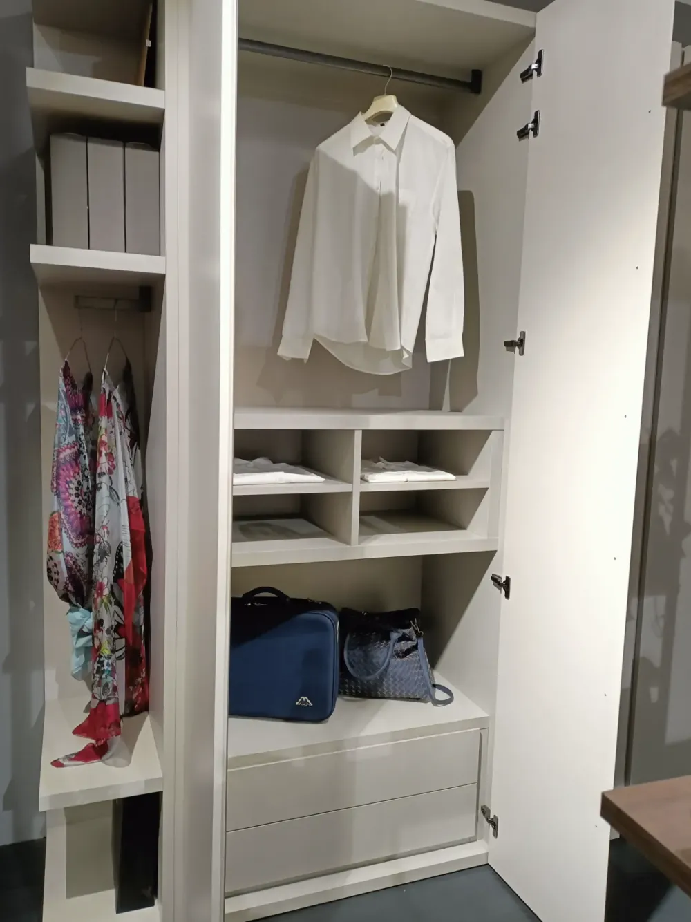- L’armadio Nastro accoglie una vasta gamma di complementi accessori interni belli e funzionali, ideali per organizzare al meglio le doti contenitive della struttura: il modello qui disponibile possiede una spaziosa cassettiera interna.