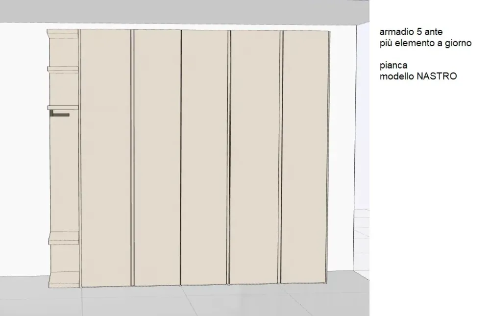 Gli armadi, perciò anche questa soluzione in Offerta Outlet, sono tra i pezzi di arredo più irrinunciabili per completare ottimamente i tuoi ambienti non solo per le qualità pratiche, ma anche dal punto di vista estetico. L’Armadio Nastro Pianca a cinque ante a prezzo scontato fa per te se desideri decorare la tua camera da letto coniugando in modo ottimale doti di praticità e design.