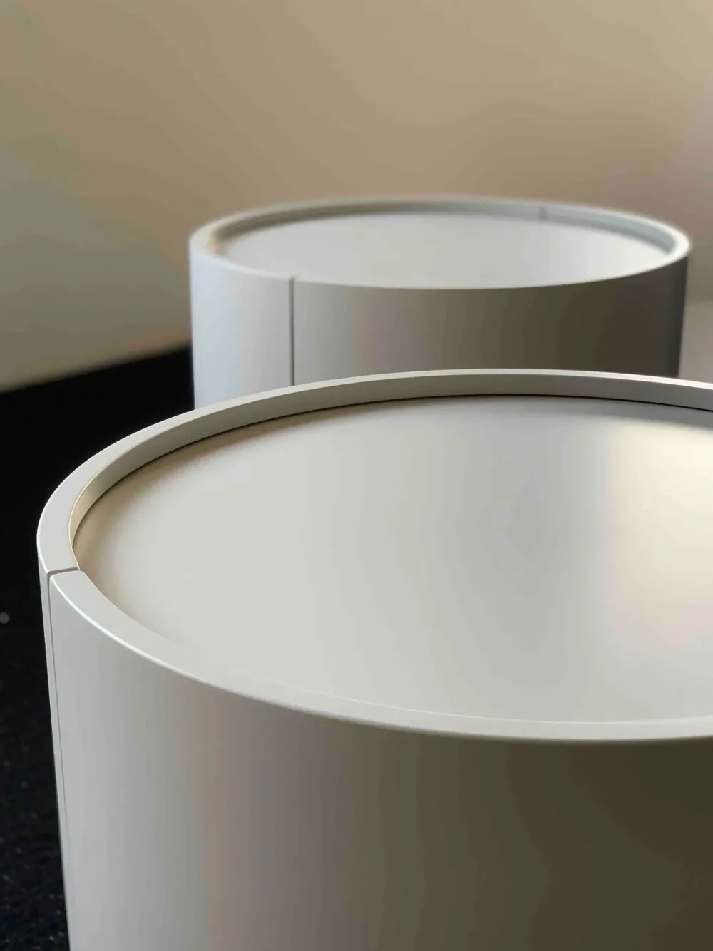 I comodini in laccato opaco a marchio Pianca, come il modello Dedalo nella fotografia, sono soluzioni tra le più originali sul mercato.