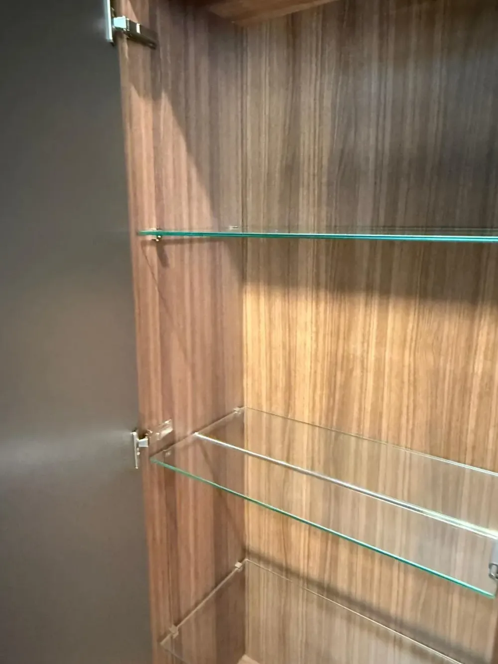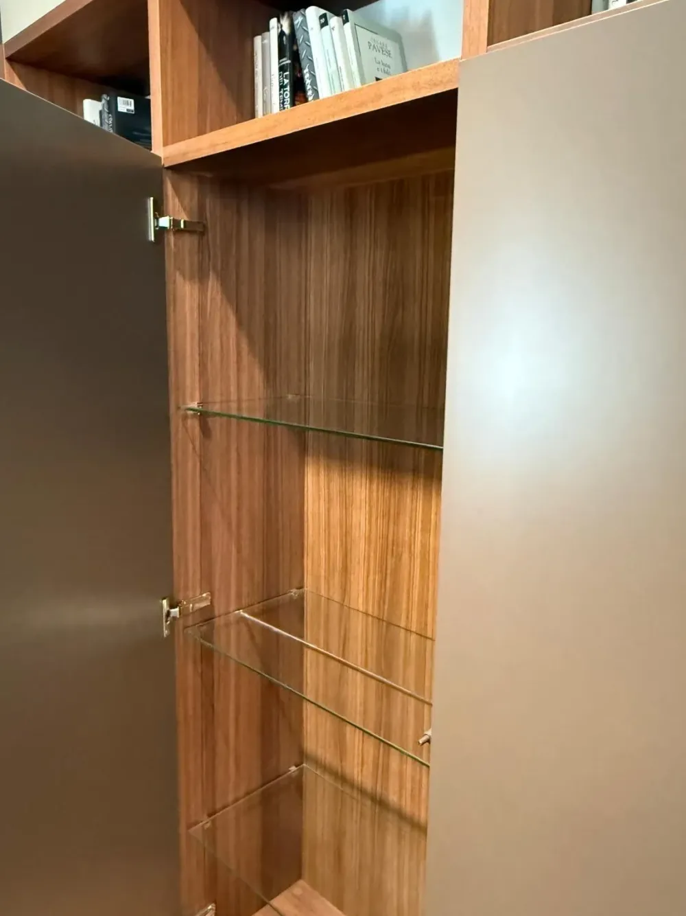 Composizione parete attrezzata in finitura impiallacciato noce canaletto e laccato opaco.