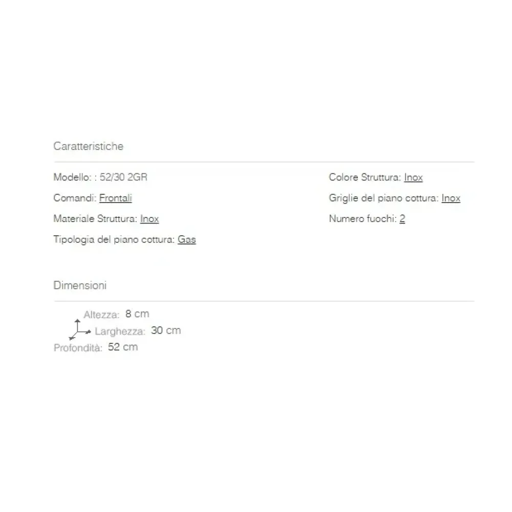 Piano cottura da appoggio 52cm argento E193 a gas 52/30 con due fuochi.