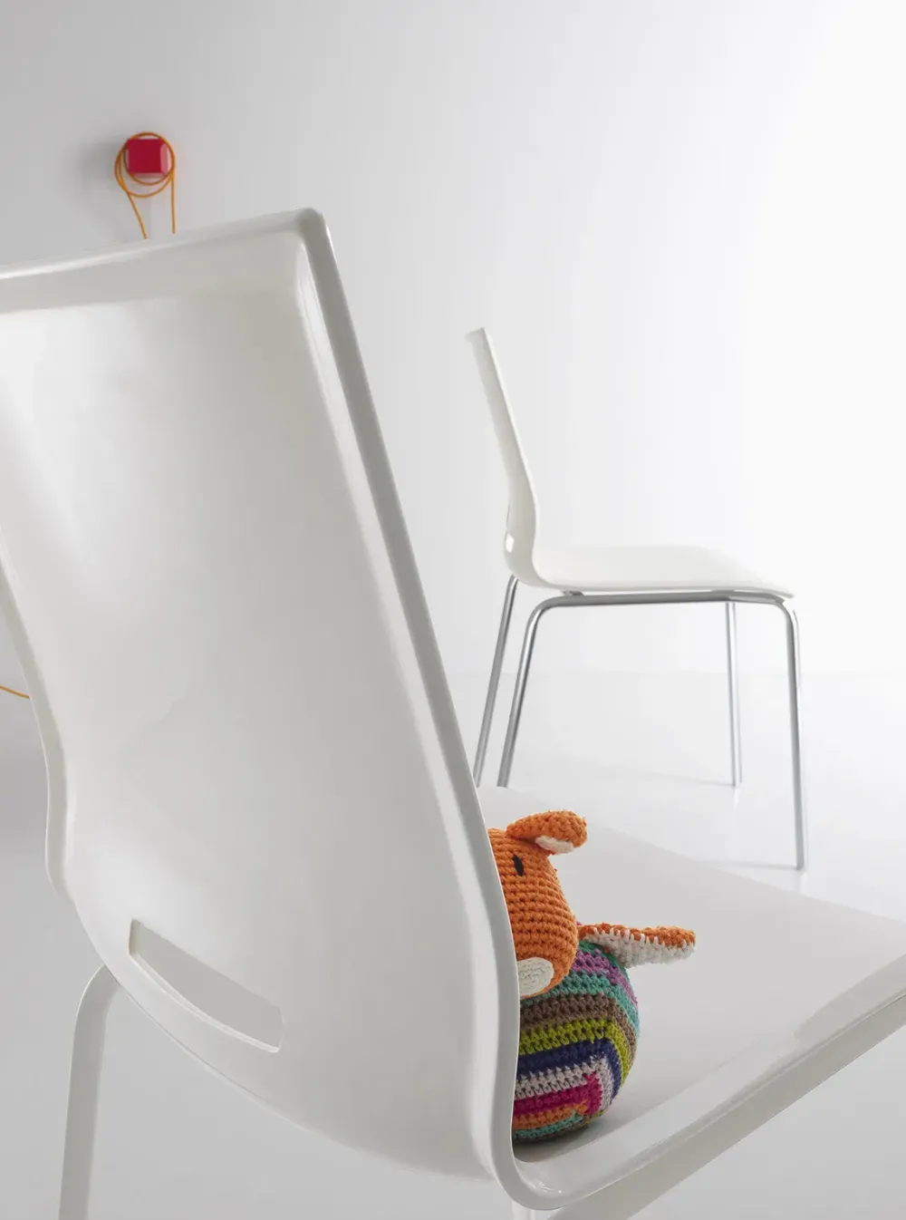 - Seduta e schienale in polipropilene rigido rinforzato, per garantire lunga durata nel tempo e facile manutenzione
