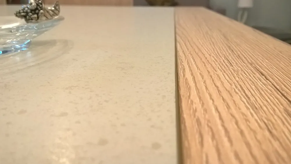 - La struttura in legno e la finitura del piano si affiancano perfettamente per creare innovativi giochi di forme e colori.