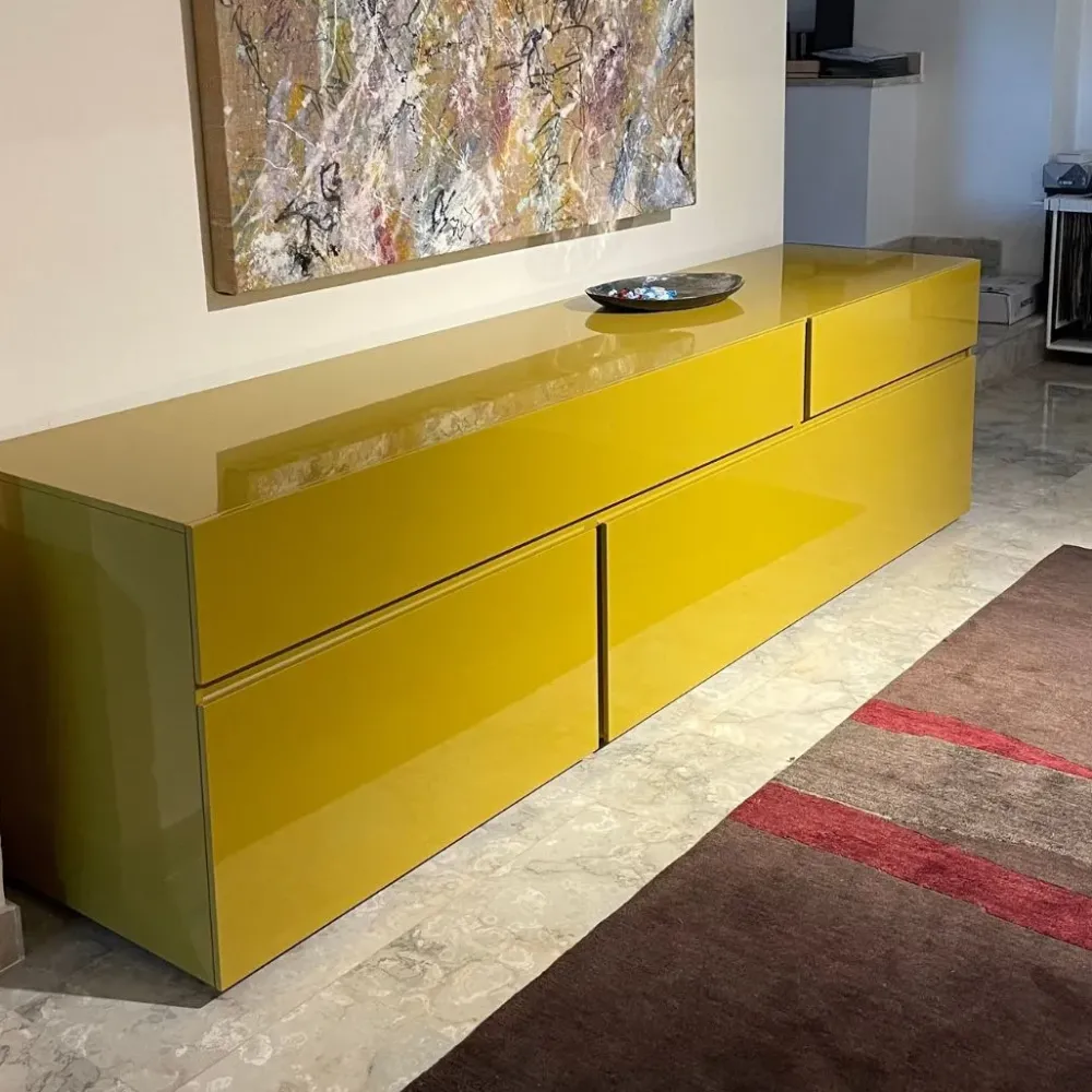 Le madie e i mobili per il soggiorno, come il modello Free mostrato in foto, sono essenziali sia dal punto di vista estetico che per quanto concerne la funzionalità: potrai riporci oggetti, oggetti d’uso quotidiano o prettamente decorativo. La madia in laccato lucido nella fotografia unisce le doti di praticità e design del locale dando vita a un concept d’arredo moderno.