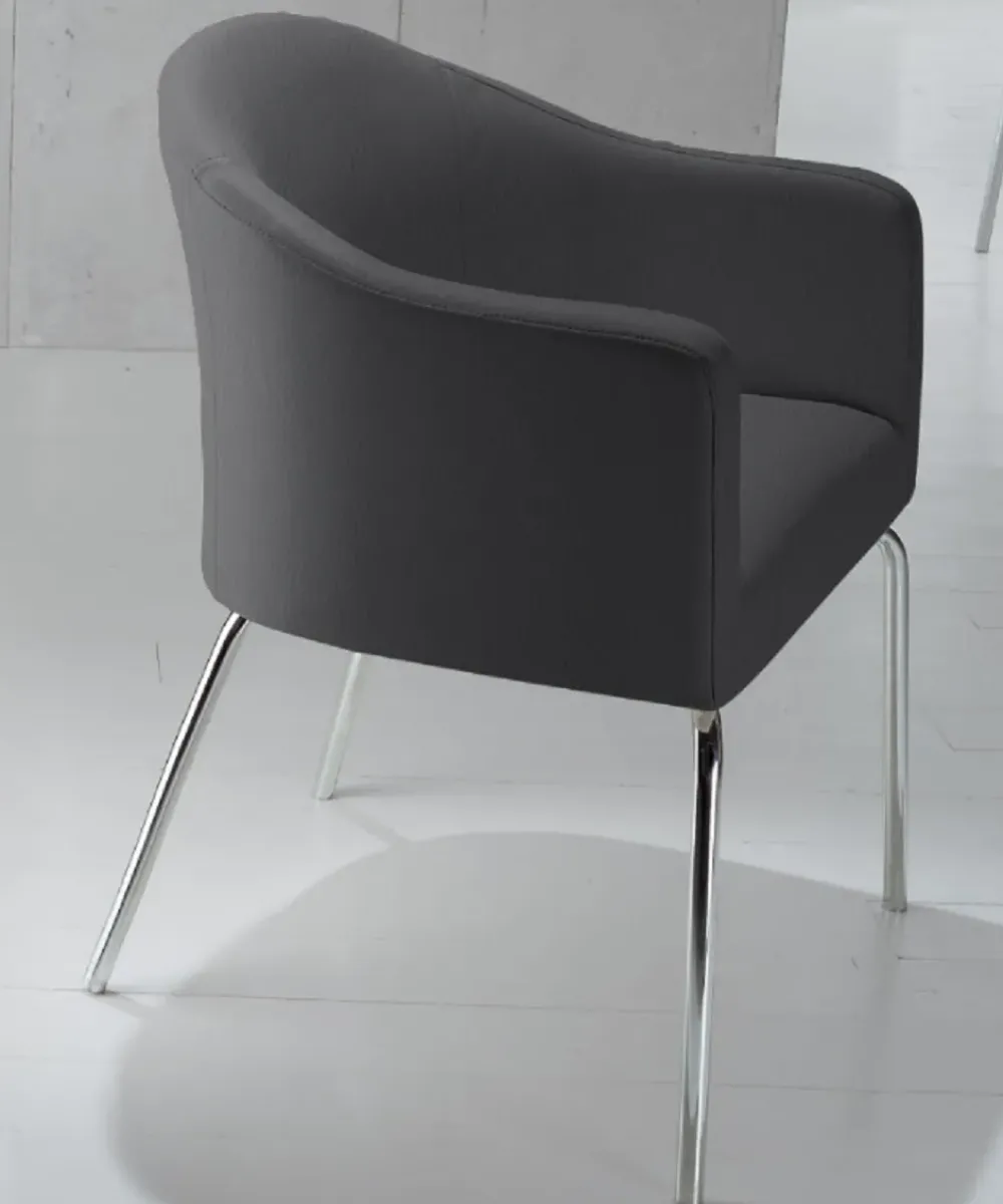 Poltroncina con gambe cromate o nere con seduta in ecopelle Bianca oppure Nera
