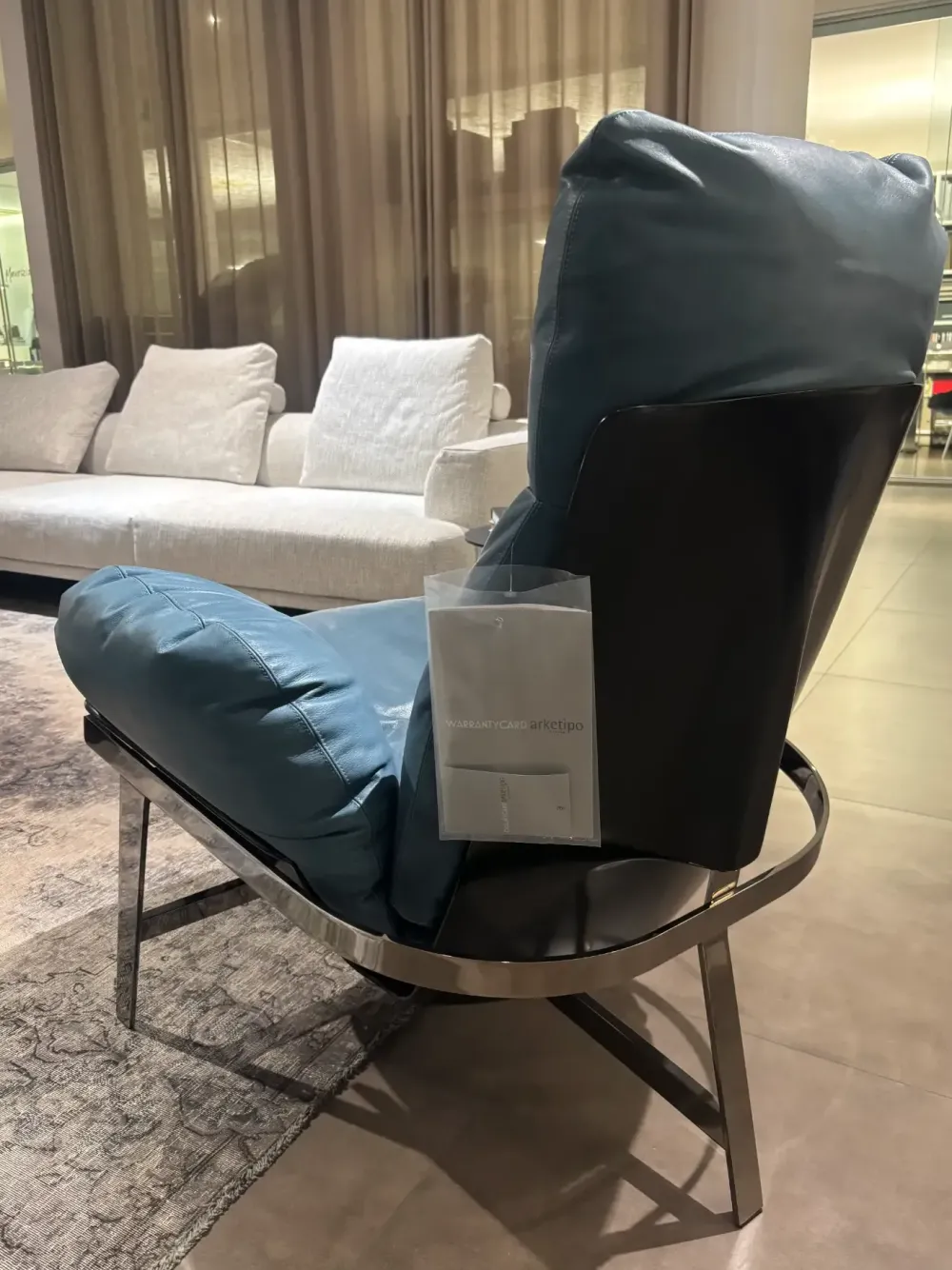 Poltrona Arketipo Jupiter Lite di esposizione dimensione L.93 prof.90 cm. Struttura Ral 9005 e basamento Black Nichel rivestita in Pelle cat. B 3149