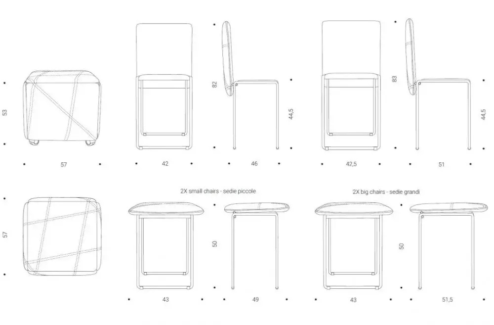 – Dimensioni: L. 57 cm H. 50 cm P. 57 cm