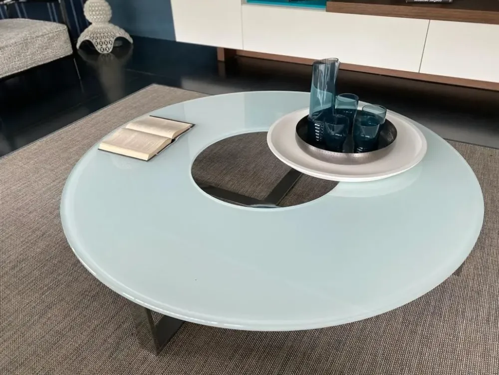 - Feg, grazie a pluriennale esperienza e passione nel settore, sceglie solo i materiali di grande pregio, o meglio quelli migliori per dare forma a la sua quasi infinita gamma di tavolini: il modello Polo in foto è realizzato in vetro.