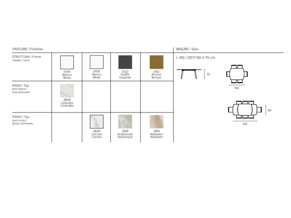 Specifiche tecniche del tavolo Oceano