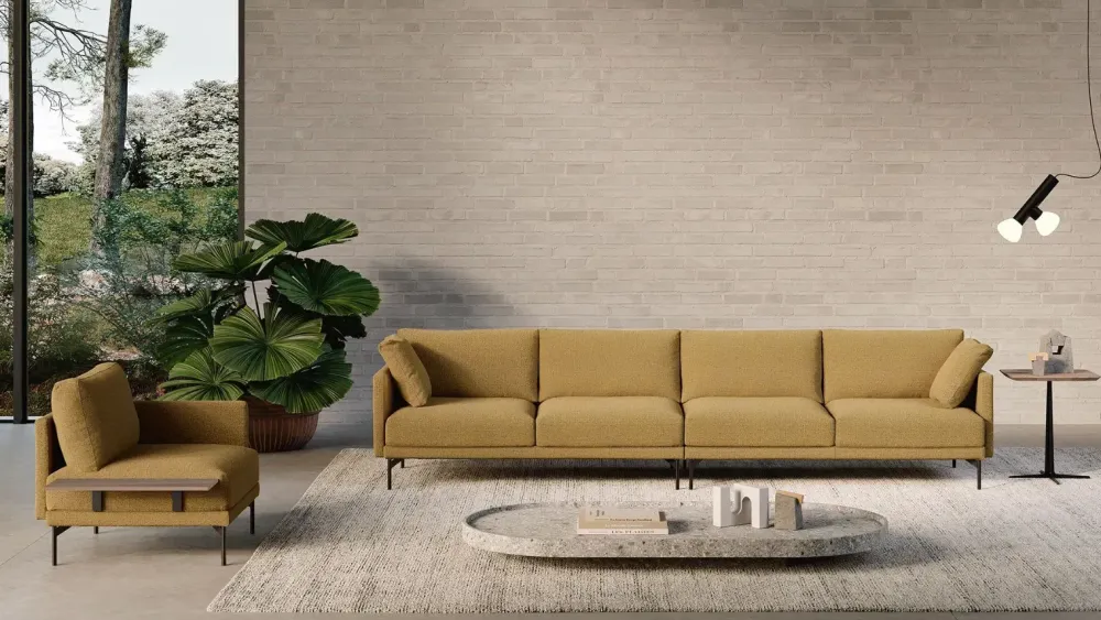 - Tipologia: Divano con 4 posti, seduta fissa, design moderno.