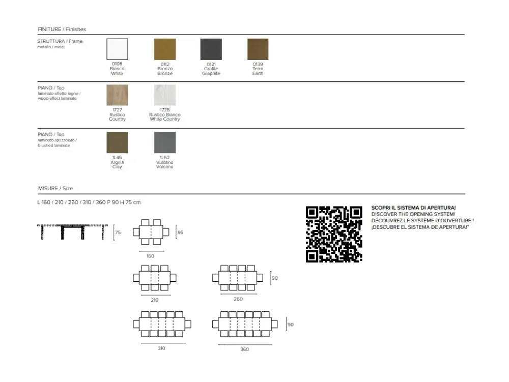 Dimensioni: 160×95 cm estensibile a 360 cm.