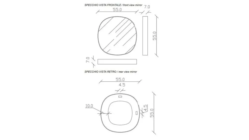 N.02 specchi nelle misure 55x55cm e N.01 specchio nelle misure 120×85 cm.