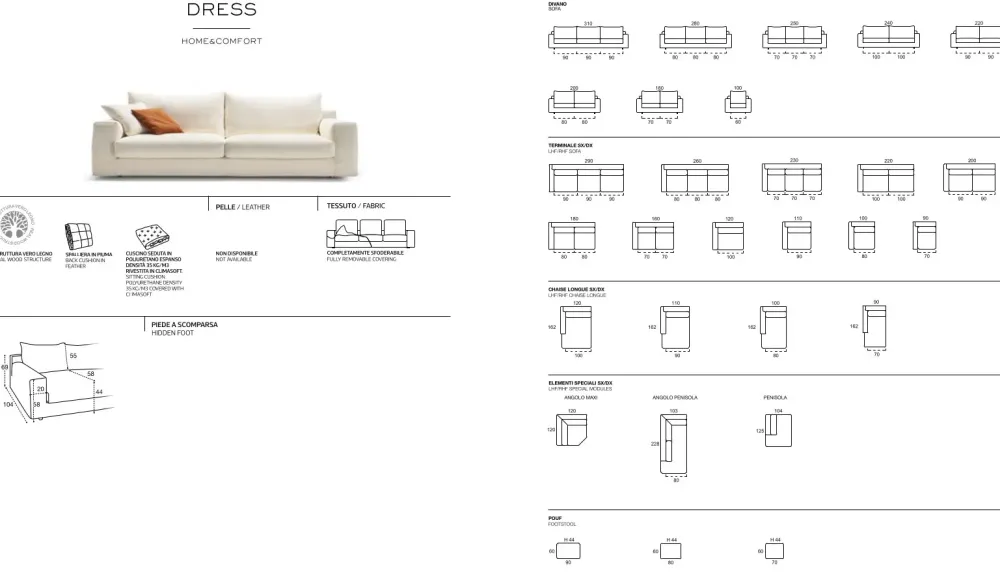 Il prezzo esposto è relativo al divano con penisola di cm 280×160, come nella foto principale.