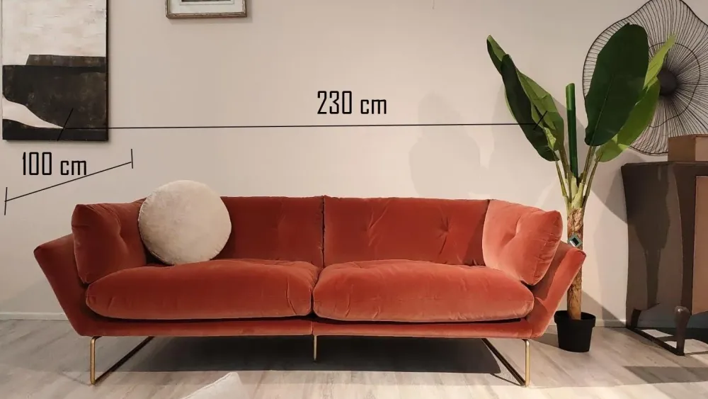 - I locali interni occorre che siano conformi alle aspettative di chi li frequenta e gli arredi, tra cui pure gli imbottiti, non devono assolutamente essere ingombranti; il modello qui presente è appartenente alla fascia di imbottiti di lunghezza che va da 226 a 250 cm, risultando così ideale per un interno di diverse dimensioni.