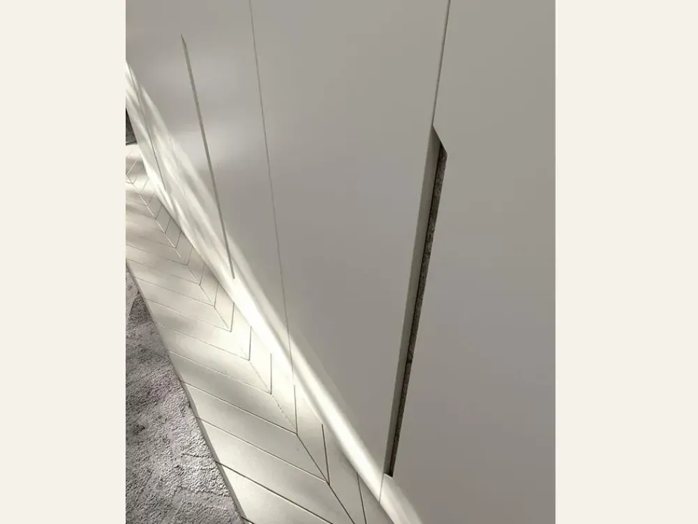Mobilgam, è un’azienda all’avanguardia per tecnica, design e dettagli produttivi, garantiti da anni di esperienza e dai tratti inconfondibili di un “made in Italy” che si esalta negli stabilimenti produttivi situati nel cuore del Veneto. Mobilgam, sfruttando la propria capacità produttiva, la versatilità dei materiali lavorati e interpretando il mondo dell’arredamento in modo spigliato e innovativo, offre a chi vuole acquistare una sua composizione la massima versatilità, proponendo oltre che una gamma vastissima di colori standard e fuori standard per personalizzare le proprie collezioni, anche una scelta di decori originali, dal moderno design alle trame grafiche. Luigi Fontana Arredamenti a Lissone espone varie ambientazioni Mobilgam sia in area giorno che area notte. Visita il sito del nostro fornitore per scoprire il design e la funzionalità Mobilgam. In questa offerta: armadio battente laccato opaco Avorio, maniglia Croos finitura pietra argentata, anta tamburato spessore 28mm. Cassettiera interna a 3 cassetti inclusa. 3 ripiani interni e 6 tubi appendi abiti inclusi. Dimensioni: L. cm. 299.5/300×257.7Hx62/63 di profondità. Offerta relativa a prodotti di ri-ordino (No merce esposta in negozio) personalizzabili nelle finiture e nelle cromie. Contattaci per scoprire le attuali promozioni sull’ intera linea Mobilgam. Trasporto e montaggio esclusi; preventivabili per le aree di Milano/Monza e limitrofi.