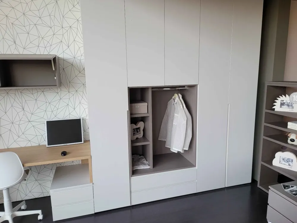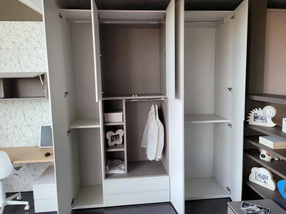 - C’è sempre in una cameretta ammobiliata perfettamente un armadio spazioso che ti permetta di ordinare le capi di abbigliamento, biancheria o pure giochi e materiale scolastico: che sia ad ante scorrevoli o con apertura a battente, di certo avrai uno spazio sempre a disposizione e spazioso per la sistemazione di oggettistica assortita; per i tuoi figli sarà facile ordinare le i propri averi grazie all’armadio 5 ante qui presente.