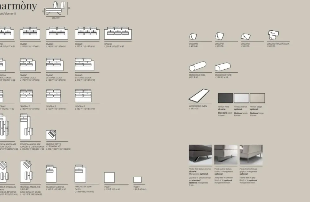 - I complementi d’arredo per il living, tra cui anche i divani come questo modello Harmony, sono essenziali sia esteticamente che per quanto riguarda la funzionalità, poiché coniugano le doti di funzionalità e stile del locale: un imbottito dall’estetica raffinata come questo non ti deluderà.