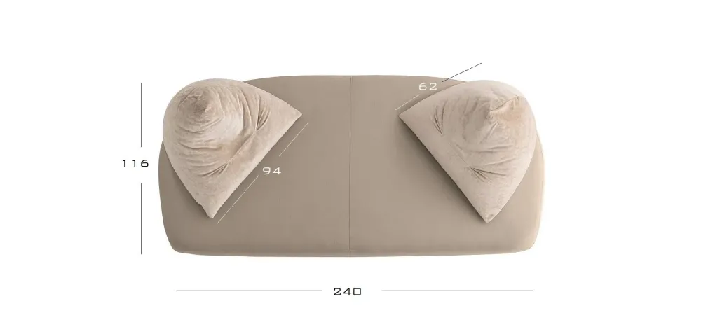 Gli arredi, tra cui pure gli imbottiti, non devono mai essere d’ingombro, innanzitutto per quanto concerne lo spazio che occupano all’interno dei locali; proprio per questo è così rilevante valutare con cura anche le loro dimensioni: il modello di Divano visibile in foto è appartenente alla serie di imbotti della marca di lunghezza che varia da 226 a 250 cm ed è perciò ideale per un ambiente di svariate volumetrie.