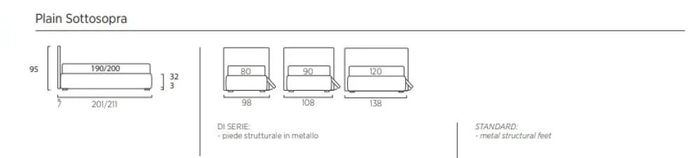 - Questo letto Singolo Plain sottosopra non prevede nessun materasso: non per questo dovrai rinunciarvi, infatti potrai richiederne uno e riceverlo con un sovrapprezzo.