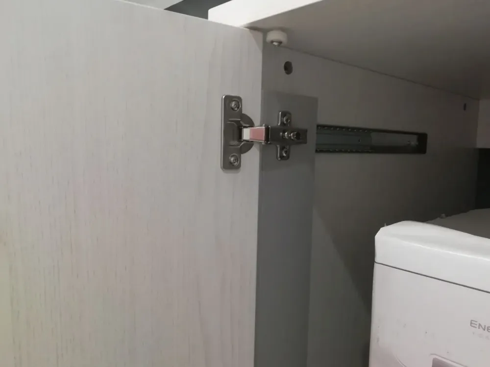 La colonna armadio porta lavatrice ed asciugatrice misura L.80 P.70 H.191 ed ha le ante rientranti. Può essere collocata anche da un altra parte visto che è staccata dal mobile lavanderia.