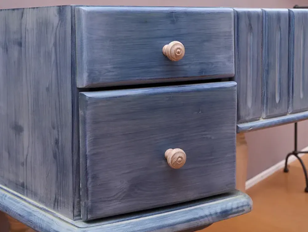 Mobile da bagno Country in legno massello di abete con finit. Decapè con 4 cassetti escluso top e lavabo