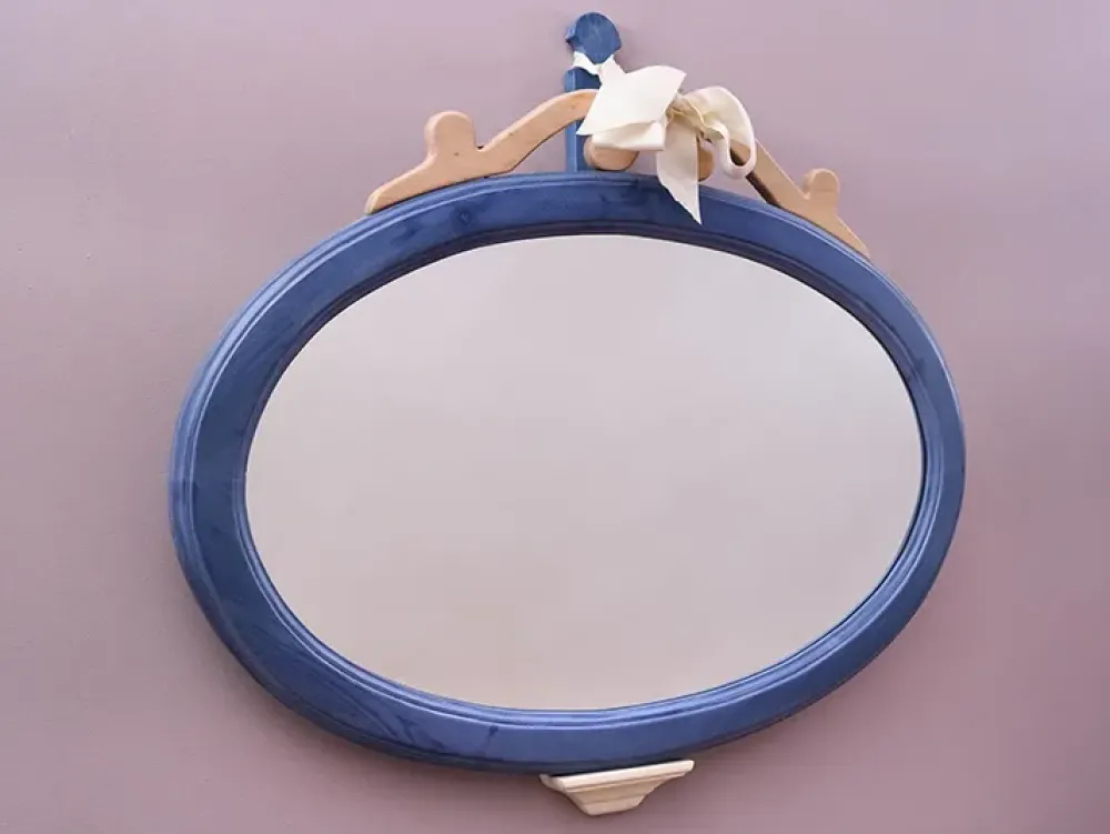 Specchio Ovale Country con fiocco in legno massello di abete
