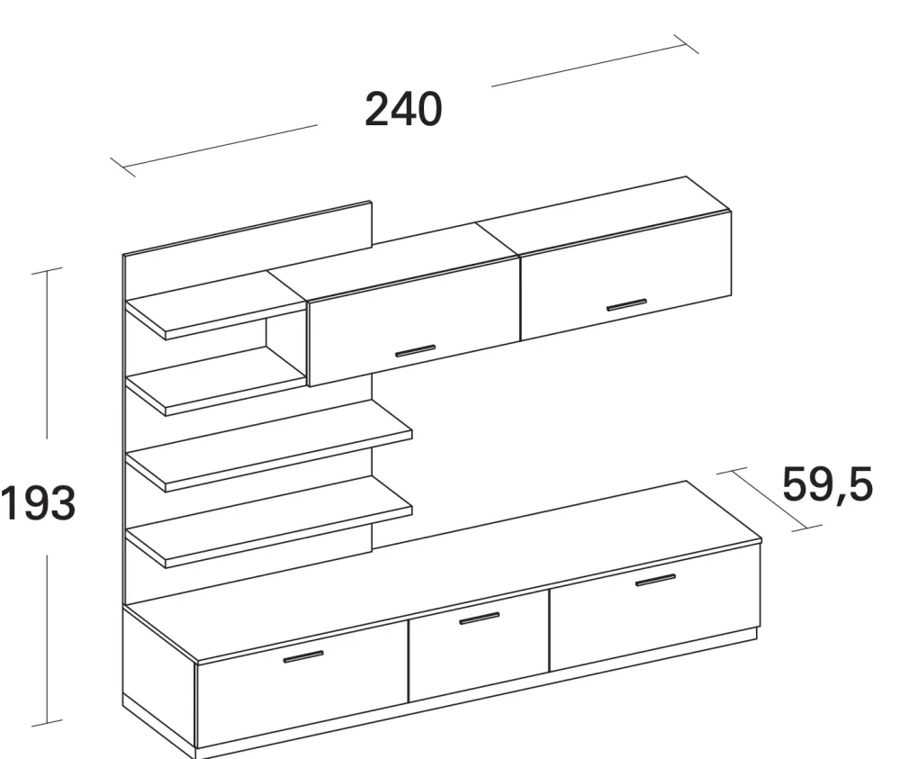 - Infine, la Composizione living 240 – 02 di Arrex è progettata per essere posizionata a terra, quindi non richiede alcun montaggio.