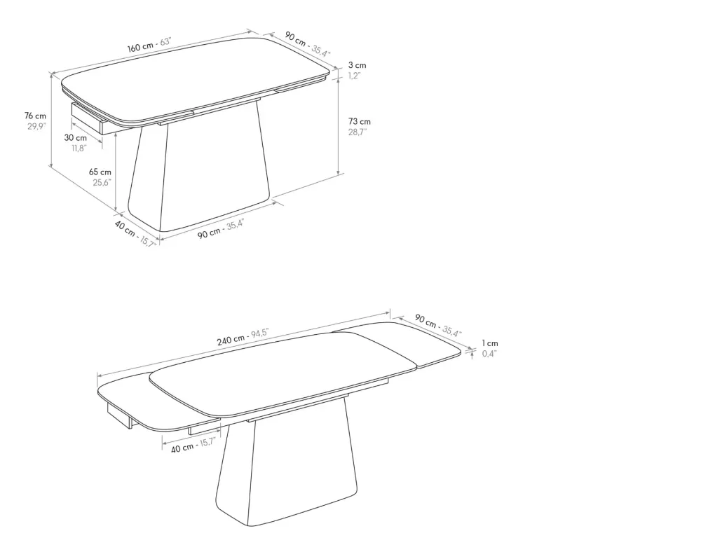 - Dimensioni versatili: Misura 160x90x76h da chiuso e raggiunge 240x90x76h grazie alle due allunghe da 40 cm ciascuna.