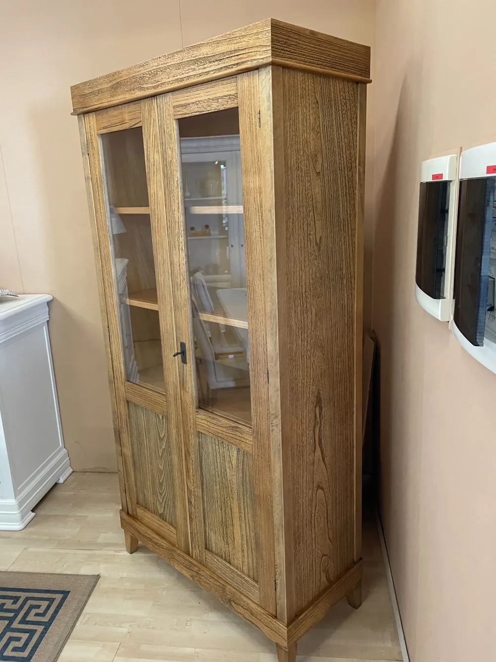 Vetrinetta 2 ante in legno massello sabbiato , ripiani interni L 100 cm H 200 P 46