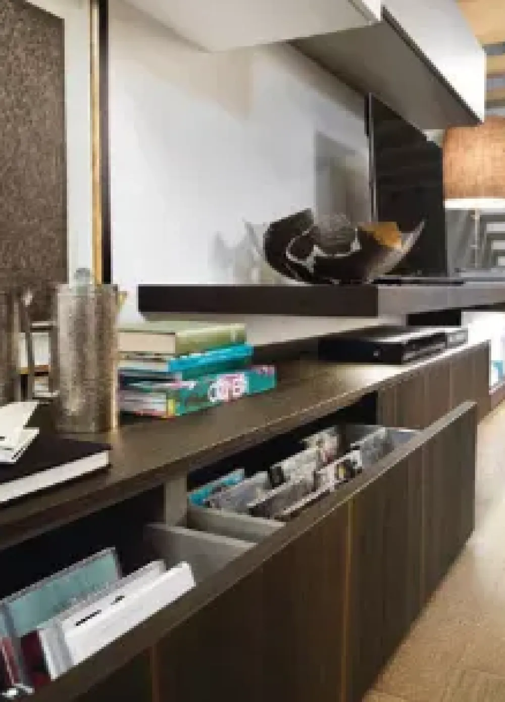Per risolvere diverse problematiche abitative, Sangiacomo ha messo a punto una linea di mobili e complementi di diverse tipologie: il modello visibile in foto, ad esempio, è a terra.