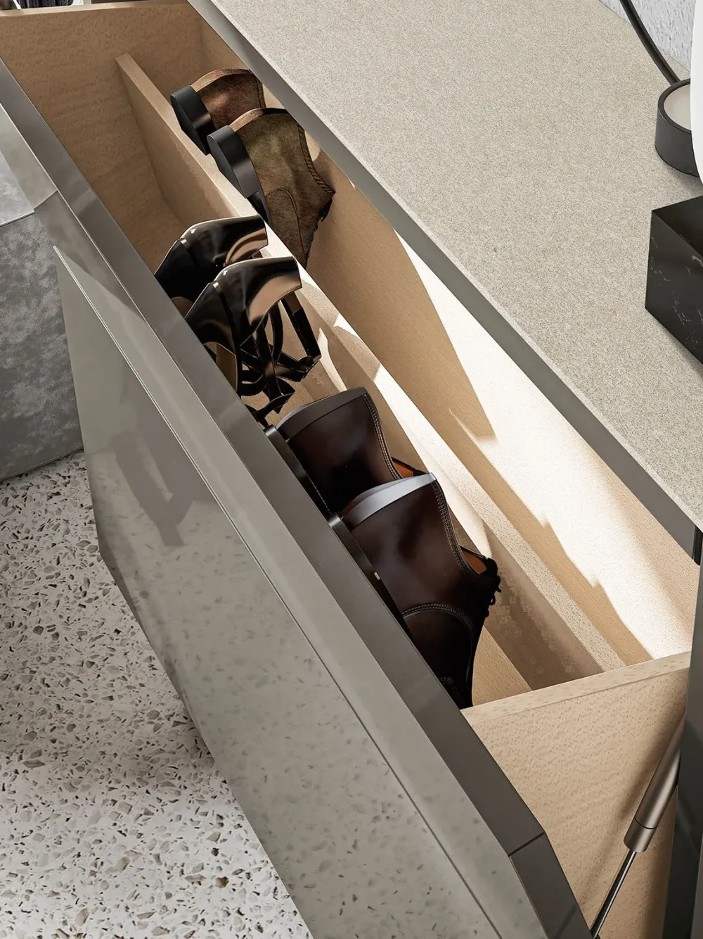 Scarpiera Hosoi disponibile in diverse finiture e dimensioni.