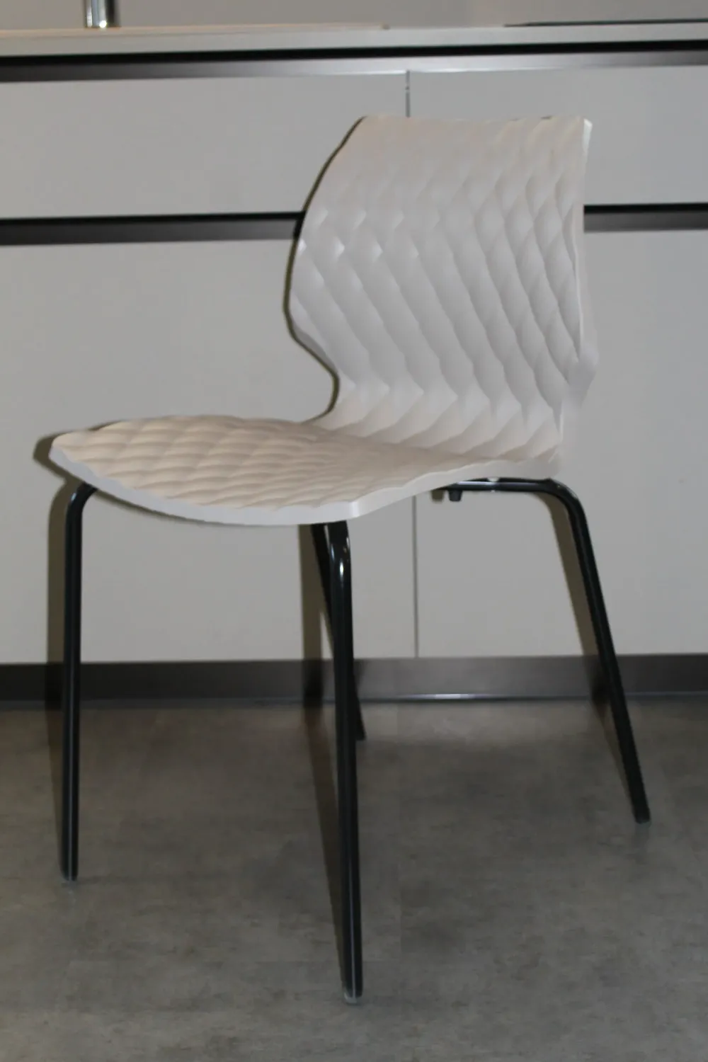 Struttura in metallo laccato nero, sedile in polipropilene color tortora con design a rombi