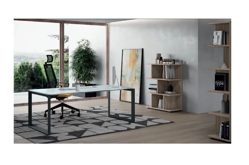 Scrivania direzionale modello E ufficio completo stratos plus in vetro ad un prezzo speciale^Flycom Best
