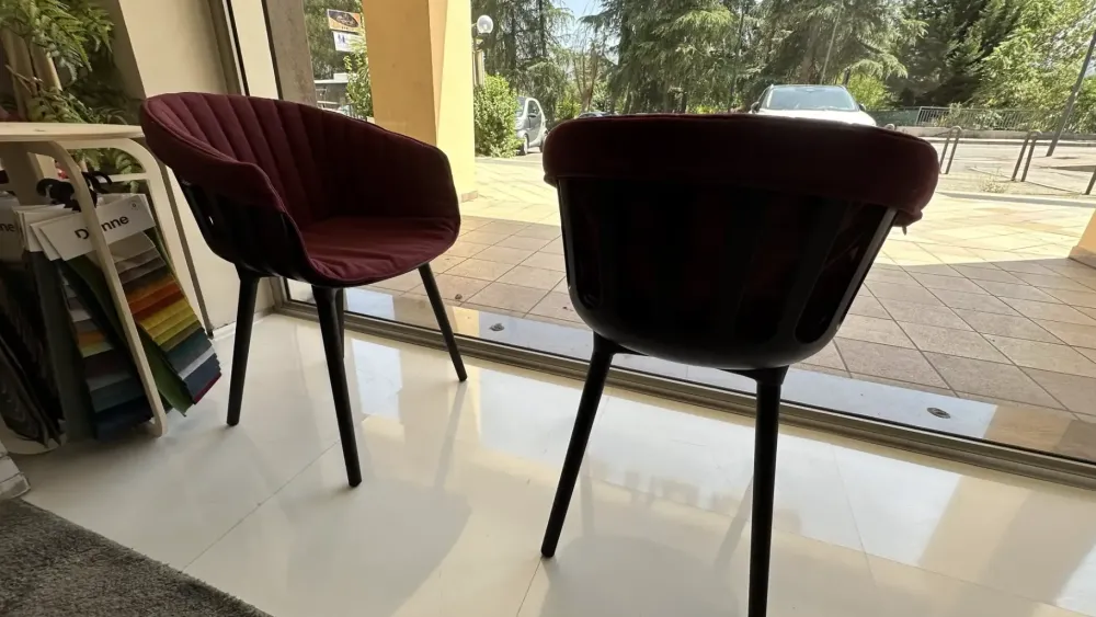 Sedia Gaber modello Basket con gambe e seduta nere, disponibile con cover tappezzata rimovibile drappeggiata come da foto +