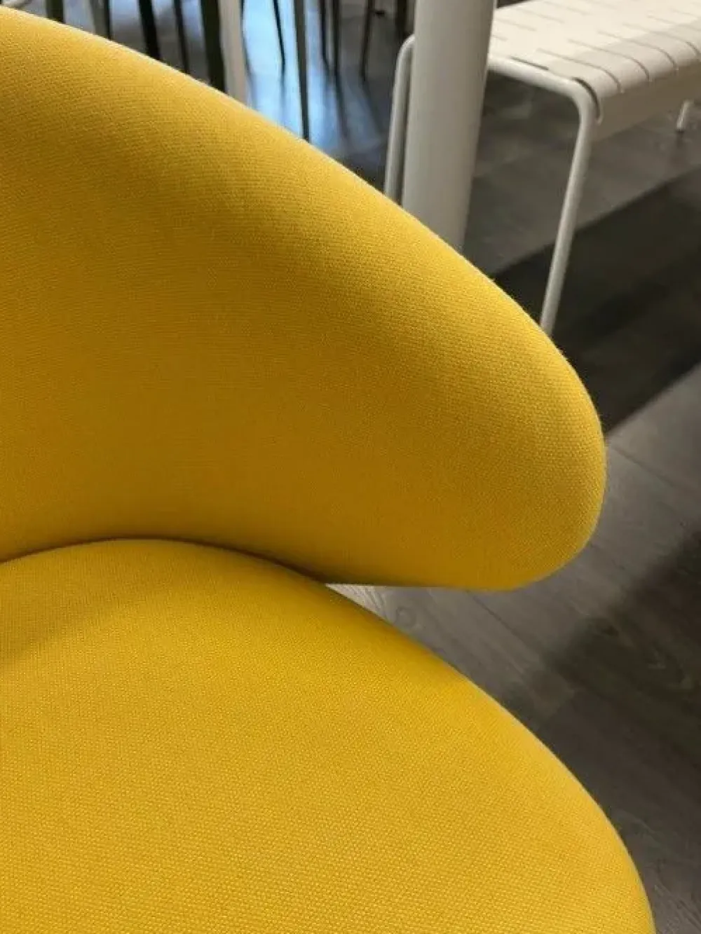 La struttura è realizzata in metallo verniciato mentre il rivestimento è in tessuto, entrambi nella finitura limone.
