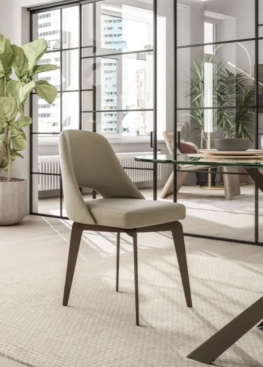 Sedia con gambe in metallo verniciato grafite o bronzo.