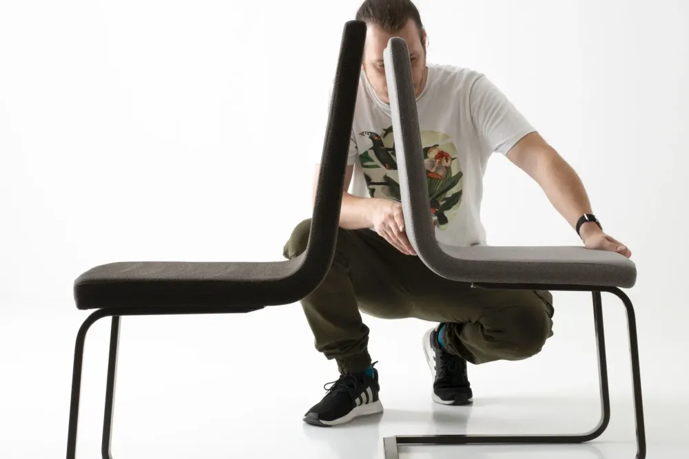 La base è realizzata in tubolare di acciaio a sezione rettangolare, una soluzione che dona leggerezza preservando la robustezza. Il rivestimento della mono scocca è disponibile in tessuto, similpelle o vera pelle.