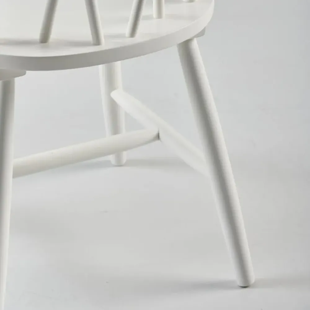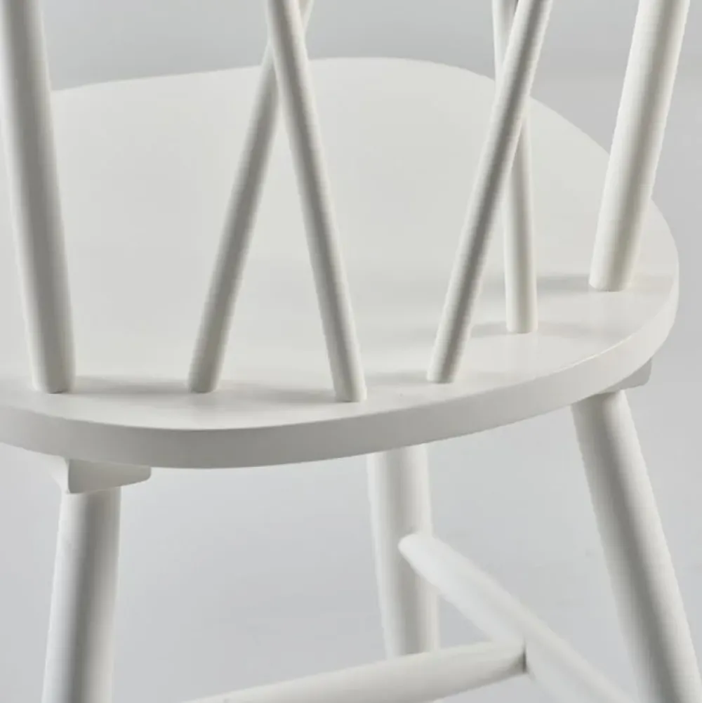 Sedia realizzata in legno massello laccato color bianco. Dimensioni: 88 x 48 x 47 cm
