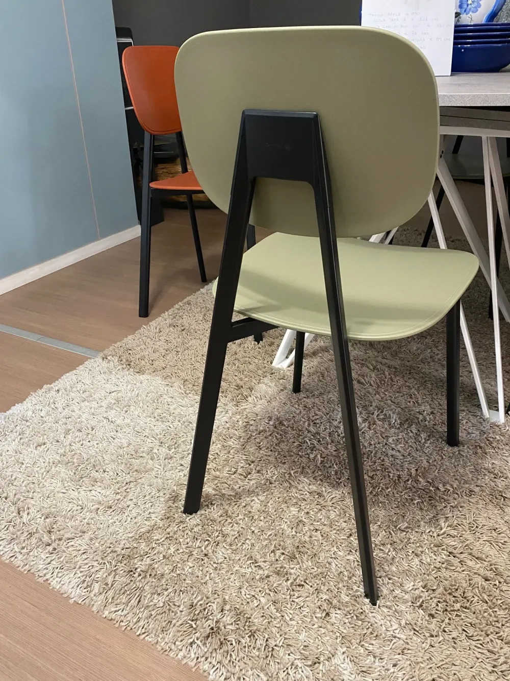 La struttura della sedia è in metallo nero opaco, colori a scelta. Super offerta per il set da 4 sedie modello tata in esposizione con: n. 2 sedie colore rosso mattone e 2 sedie colore salvia 440. Offerta valida solo per le sedie esposte.