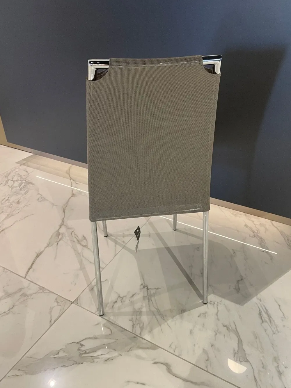Sedia con struttura in metallo cromato e tessuto in tecnorete tortora. Disponibili 4 pezzi non vendibili singolarmente. E’ possibile visionare il prodotto presso il nostro punto vendita di Cernusco Lombardone (LC)