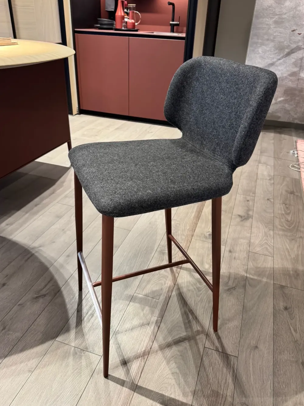 Coppia di sgabelli Wrap di Midj scontati a 656,00 euro. Sgabello con 4 gambe in metallo verniciato rosso bulgaro e scocca rivestita in tessuto grigio scuro. Sgabelli design da cucina per isola o penisola. Sgabello dalle linee essenziali e dal design minimale, l’imbottitura confortevole e lo schienale avvolgente garantiscono comfort e benessere. Dimensione sgabelli: larghezza 47 cm, profondità 53 cm, altezza seduta 65 cm, altezza schienale 95 cm. Prodotto che potrete vedere e provare nella nostra esposizione a Giussano, in provincia di Monza e Brianza. Per qualsiasi informazione non esitate a contattarci.
