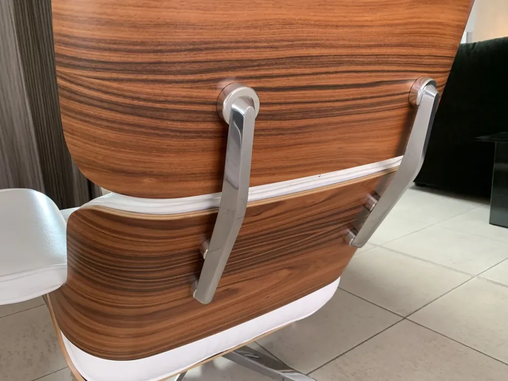 Rivestimento in pelle cat. A lusso COM 20. Retro in legno compensato curvato impiallacciato di palissandro Base in alluminio nero lucido.