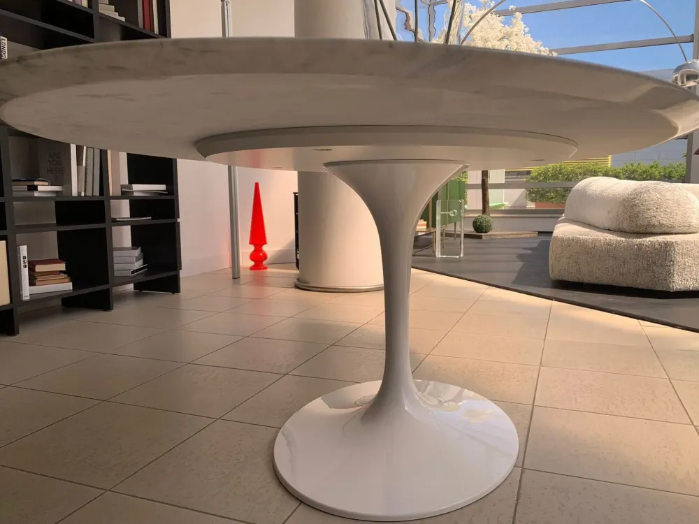 Top in marmo bianco Carrara e base in fusione di alluminio laccato lucido col. bianco