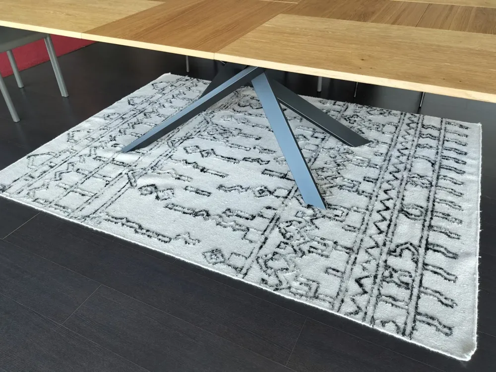 - Inserire dei tappeti tra i mobili di casa, vuol dire creare singolari composizioni di forme e colori, riempire spazi troppo vuoti oppure comporre un contrasto equilibrato con i restanti arredi. Per riuscire a farlo, ad ogni modo, è essenziale connotare una peculiare linea stilistica: i tappeti, di fatto, vanno abbinati ai mobili, ai pavimenti, agli altri elementi accessori e anche al tipo di ambiente che arricchiscono. Prima di sceglierne uno, quindi, ti sarà utile appurare a quale concezione stilistica fare riferimento: se vuoi customizzare un ambiente di spiccato gusto moderno, allora il tappeto Sahari presente in foto sarà la scelta ideale per te.